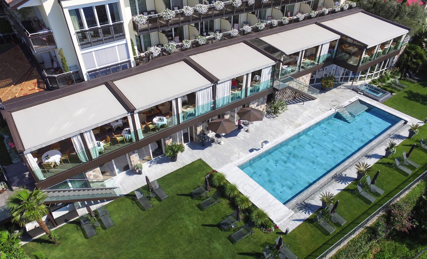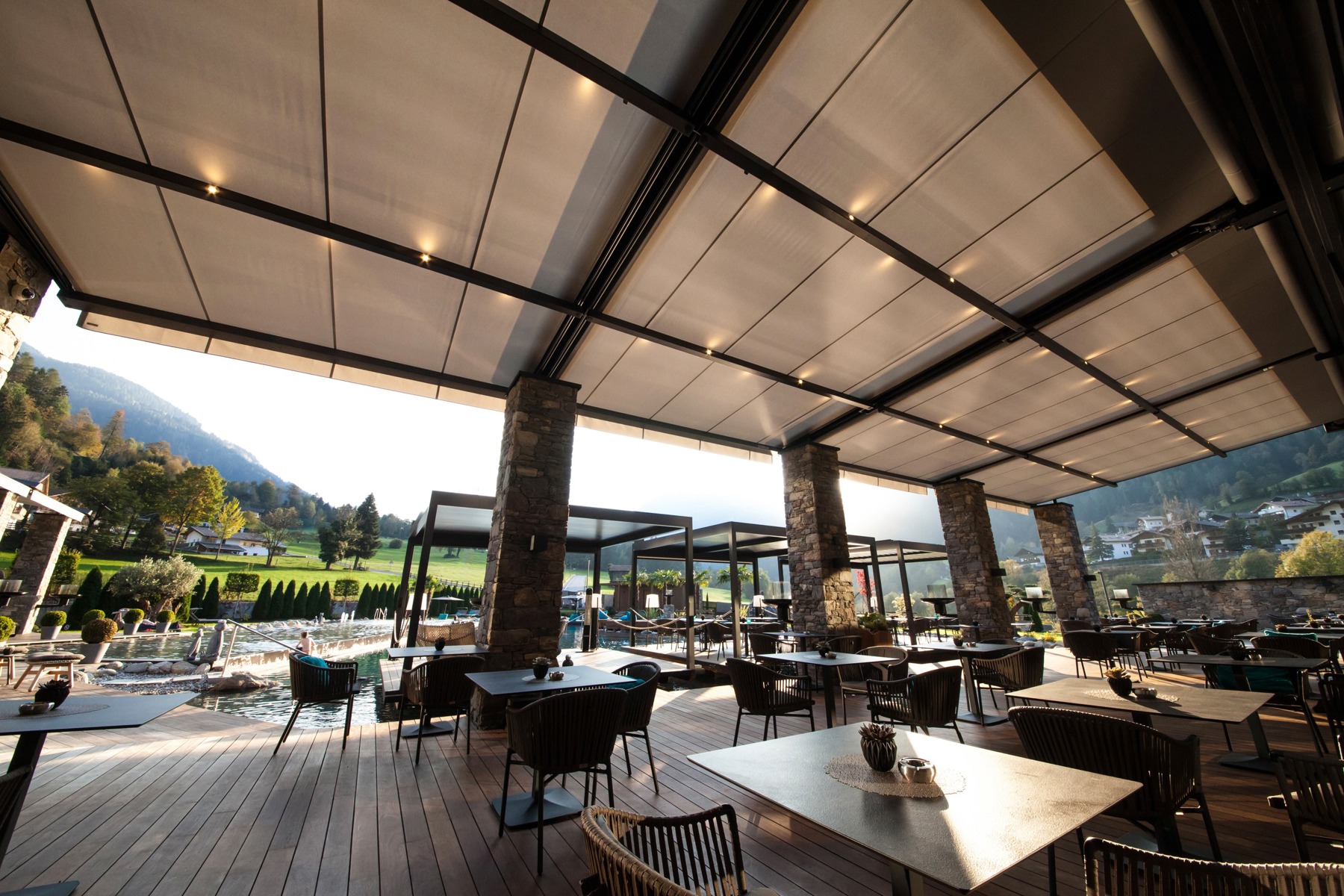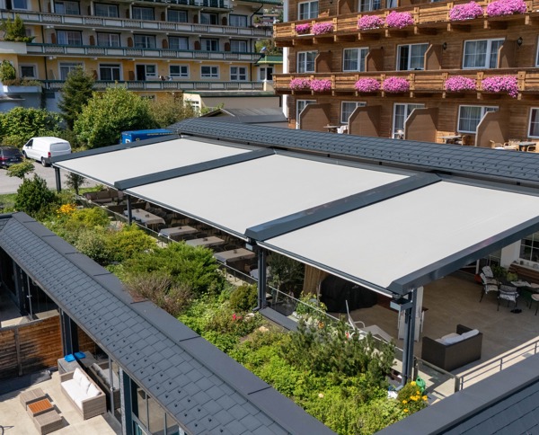 Großflächenmarkisen bieten zuverlässigen Sonnen- und Wetterschutz für große Terrassen und Außenbereiche.